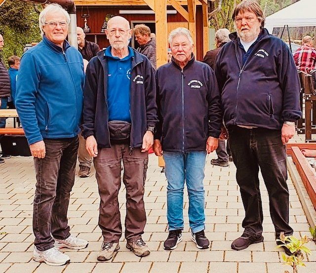 Unsere Mannschaft (v.l.n.r.) Gerhard, Dieter, Jochen und Peter hielt sich gut. Punktgleich mit dem 3. reichte es aufgrund der schlechteren Stockquote leider nur für den 4. Platz.